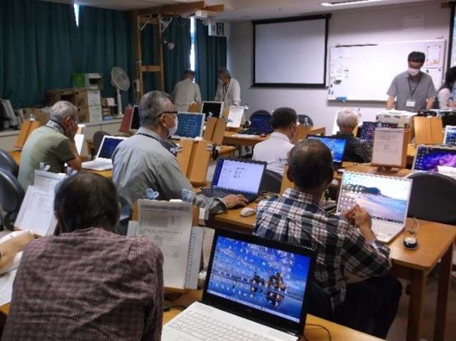 先ずは、パソコンに馴染んでもらい、操作等の抵抗感・苦手意識を軽減してもらうための入門講座及びスマホからの写真の取り込みや整理などの活用講座を実施しました。各講座の参加者皆様は、熱心に取り組まれていました。